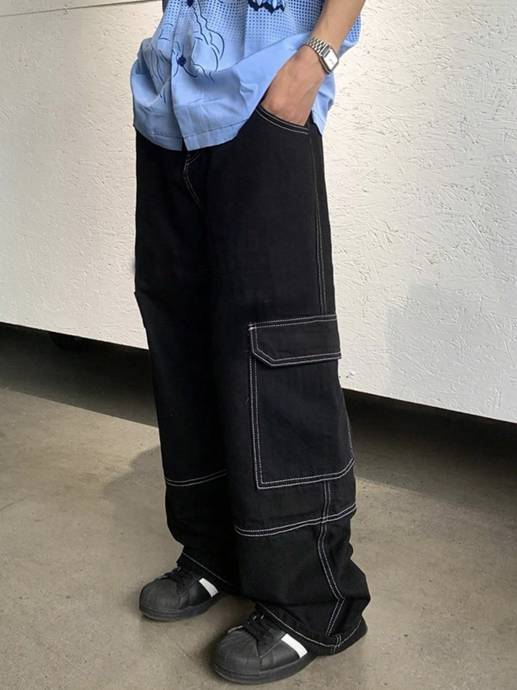 Be the first to review “George Black Contrast Stitch Cargo Pants”
